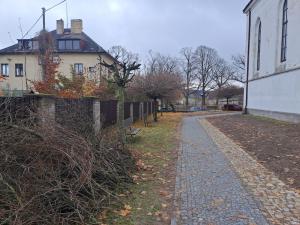 Během podzimu probíhá údržba v obci: hrabání listí, prořezávání a čištění.