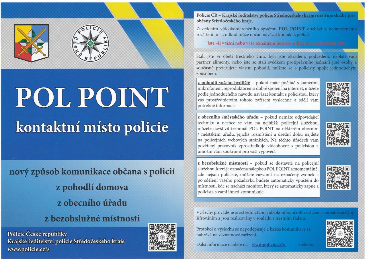 Vznikl nový alternativní způsob komunikace občanů s policií. Bližší informace k projektu Pol Point v přiloženém letáčku, či k dohledání na www.policie.cz