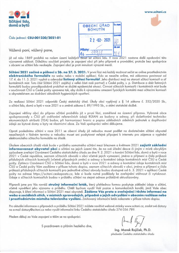 Přinášíme vám se, milí spoluobčané, leták ke sčítání lidu, které bude probíhat v březnu 2021.