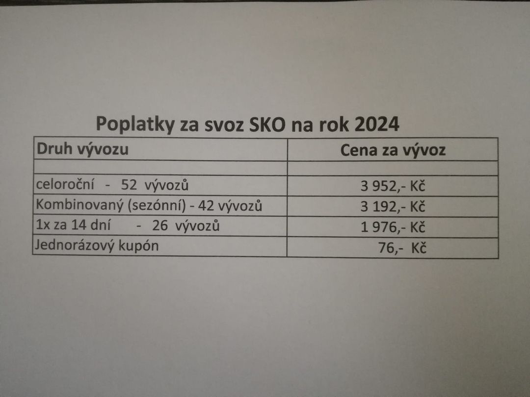 Prodej známek bude zahájen v pondělí 8. 1. 2024. Ceny za jednotlivé vývozy jsou přílohou této zprávy. Na známky zakoupené v roce 2023 se bude vyvážet až do 31. 1. 2024. Nové známky lze zakoupit na OÚ Bohutín a v obchůdku u paní Heřmanové. Jednorázové vývozy jsou pouze doplňkem-ne pravidelným vývozem